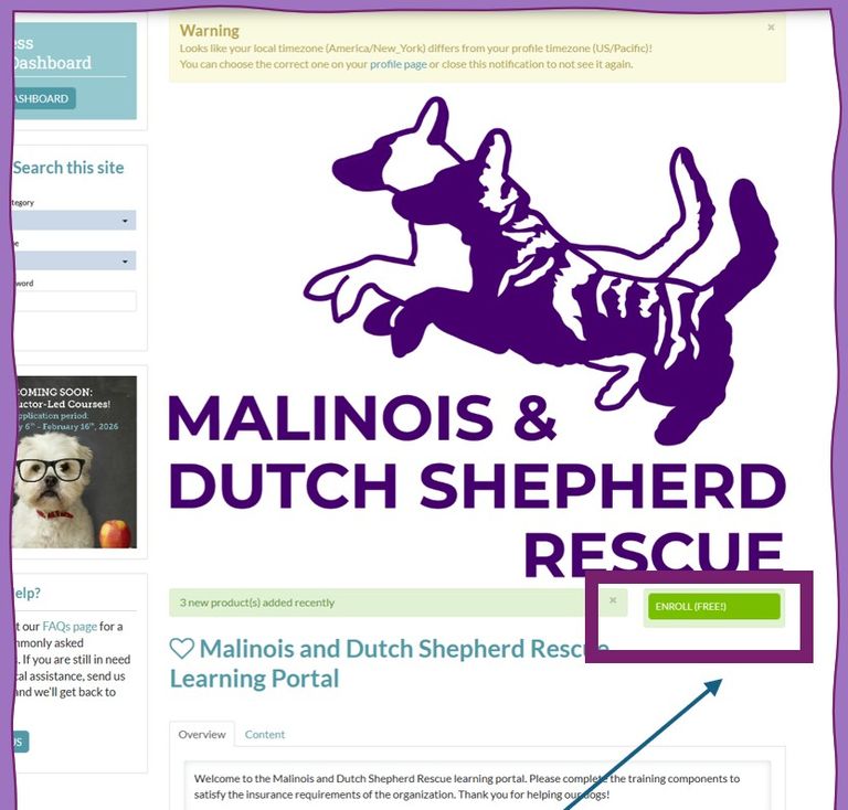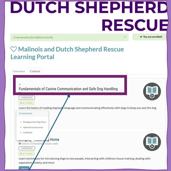 After you are logged in, click the Malinois and Dutch Shepherd Rescue's Training Link below.