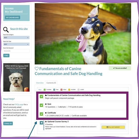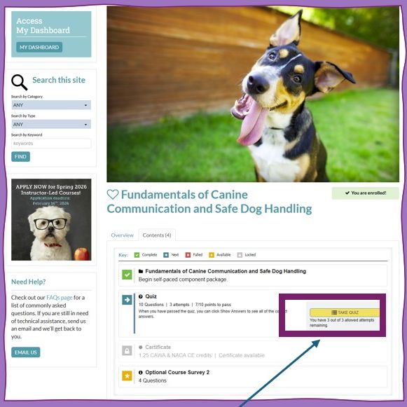 If you experience any issues, email maddiesuniversity@maddiesfund.org and they will get right back to you.